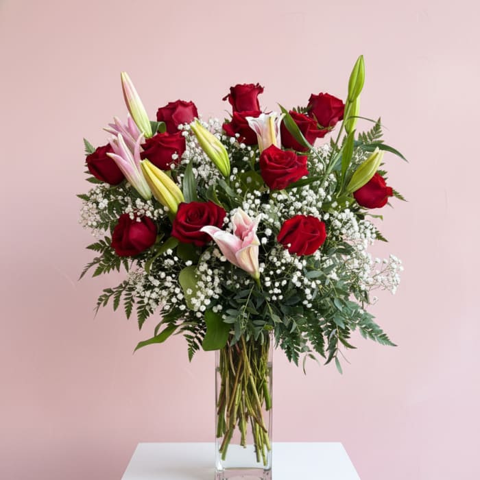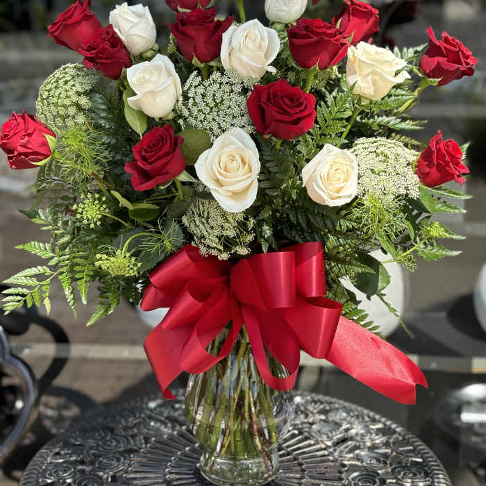 Price: $240.00Classy Red Roses (with Queen Anne's Lace or Baby's Breath)